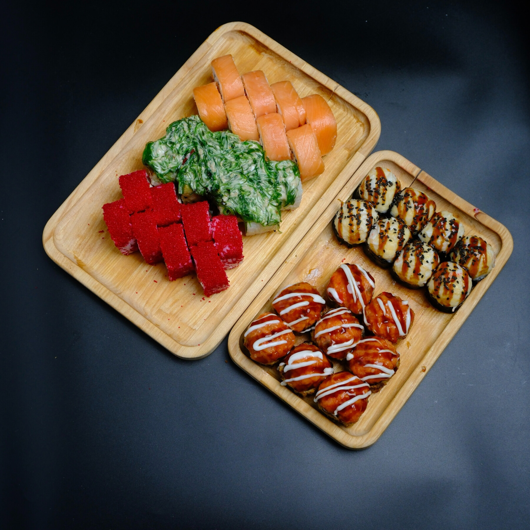 Филадельфия, Калифорния с лососем, Жареный с лососем, Снежный краб, Чука ролл.