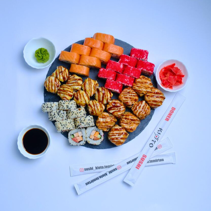 Сет 40 штук. Ролл Филадельфия, Калифорния, Жареный с лососем, Лава хот, Цезарь.